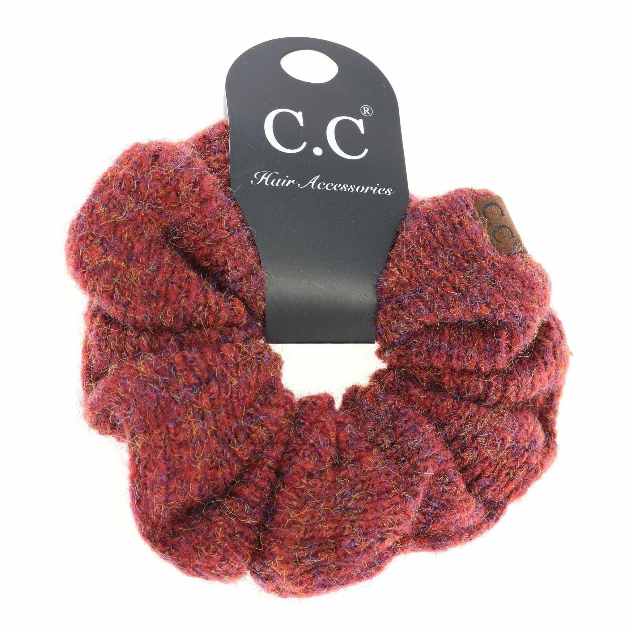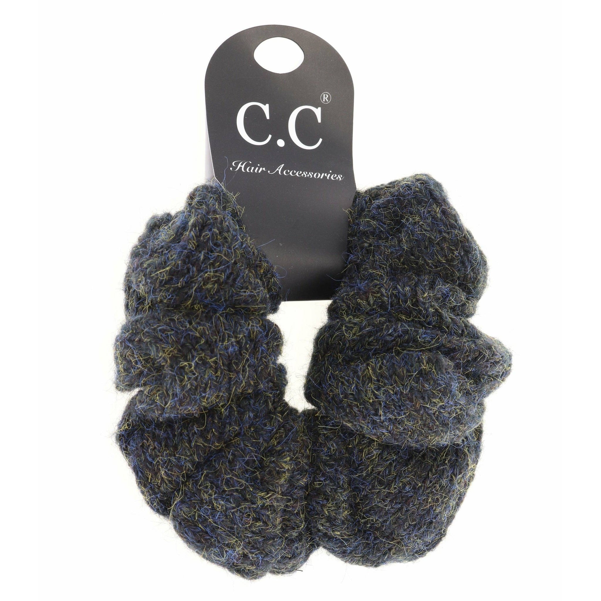 C.C is great at hair accessories and this scrunchie is no exception! In a subtle two-tone knit yarn, you will be sure to love this adorable scrunchie this winter! * One Size. * Hand wash cold only. * 79% polyester 18% acrylic 3% spandex