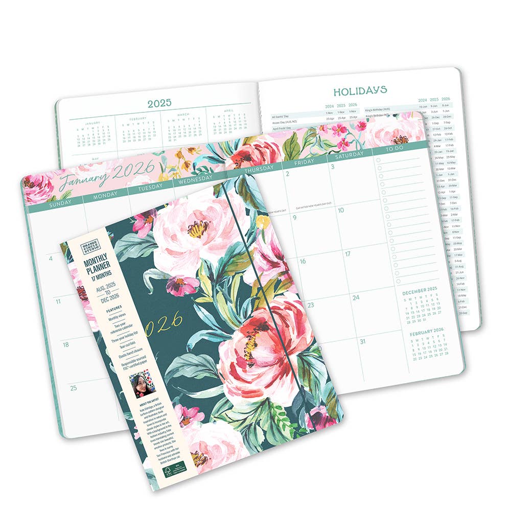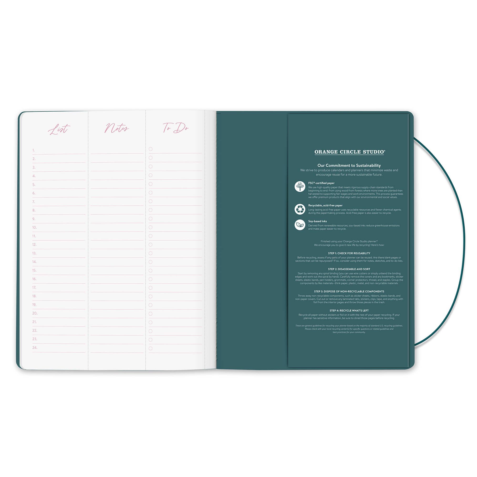 Enjoy maximum style in a slim, attractive package with Orange Circle Studio's Just Right Monthly Planner. This planner boasts full-color illustrations throughout and thick, high-quality paper for keeping track of appointments, meetings, birthdays, and other important events. Use the tear-out lists and sturdy back pocket while running errands, brainstorming ideas, and keeping track of all of life's little details. A 17-month reference calendar and three-year holiday list help you stay organized year round. Additionally, the artist benefits directly from each planner purchased, further supporting creative communities around the globe.